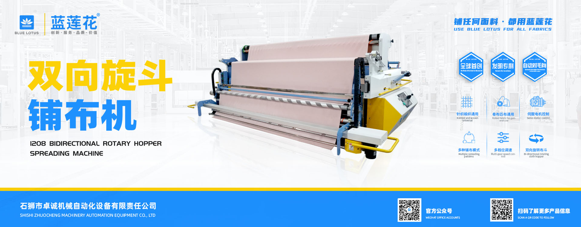我司結合市場自主研發(fā)的藍蓮花品牌拉布機擁有多項自主專利技術,機器以小巧多功能易操作低維護為特點,為業(yè)界提供性價比機型; 藍蓮花品牌拉布機以實用質優(yōu)為特點自投產(chǎn)以來便在國內贏得市場廣泛認可。